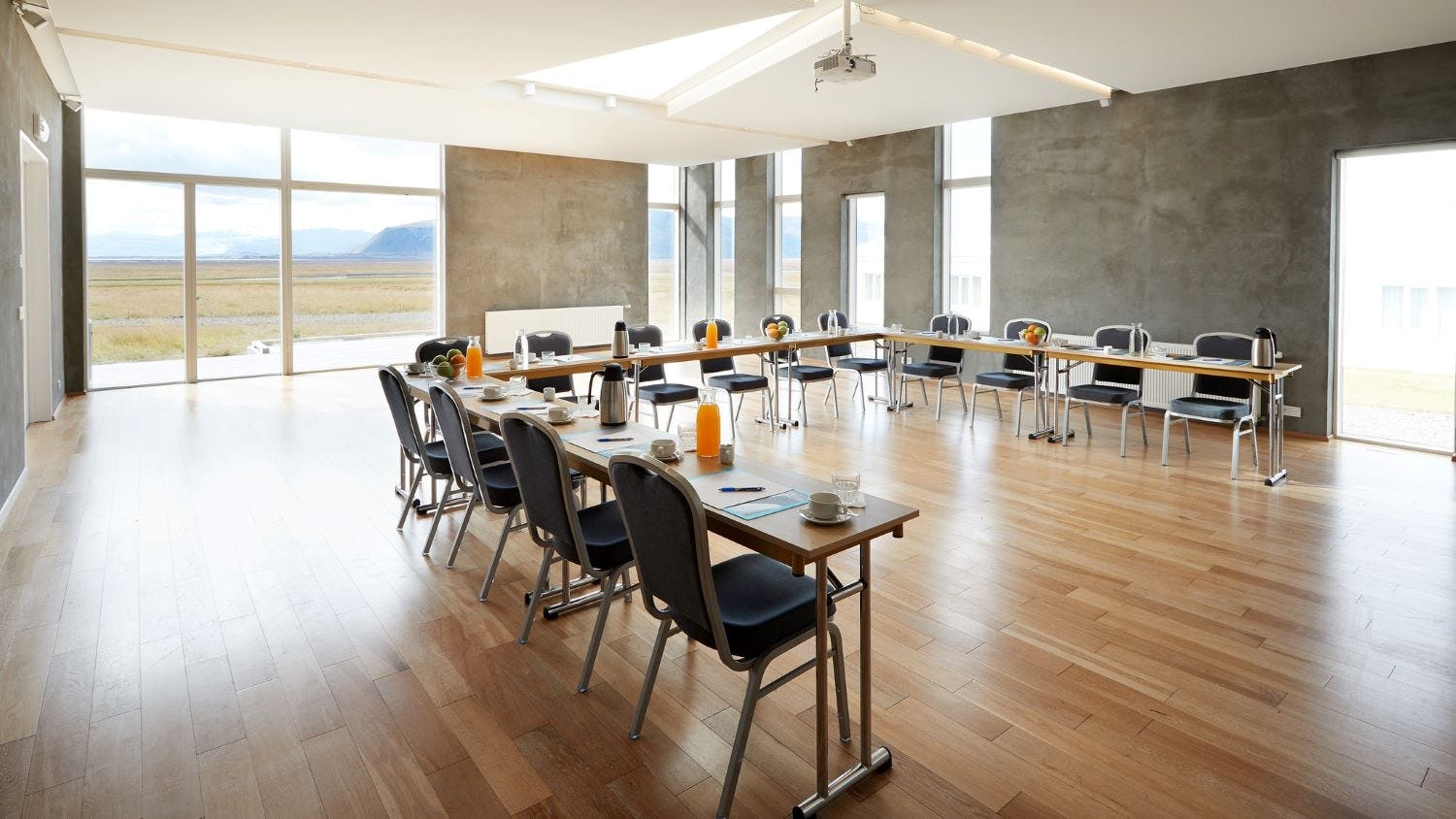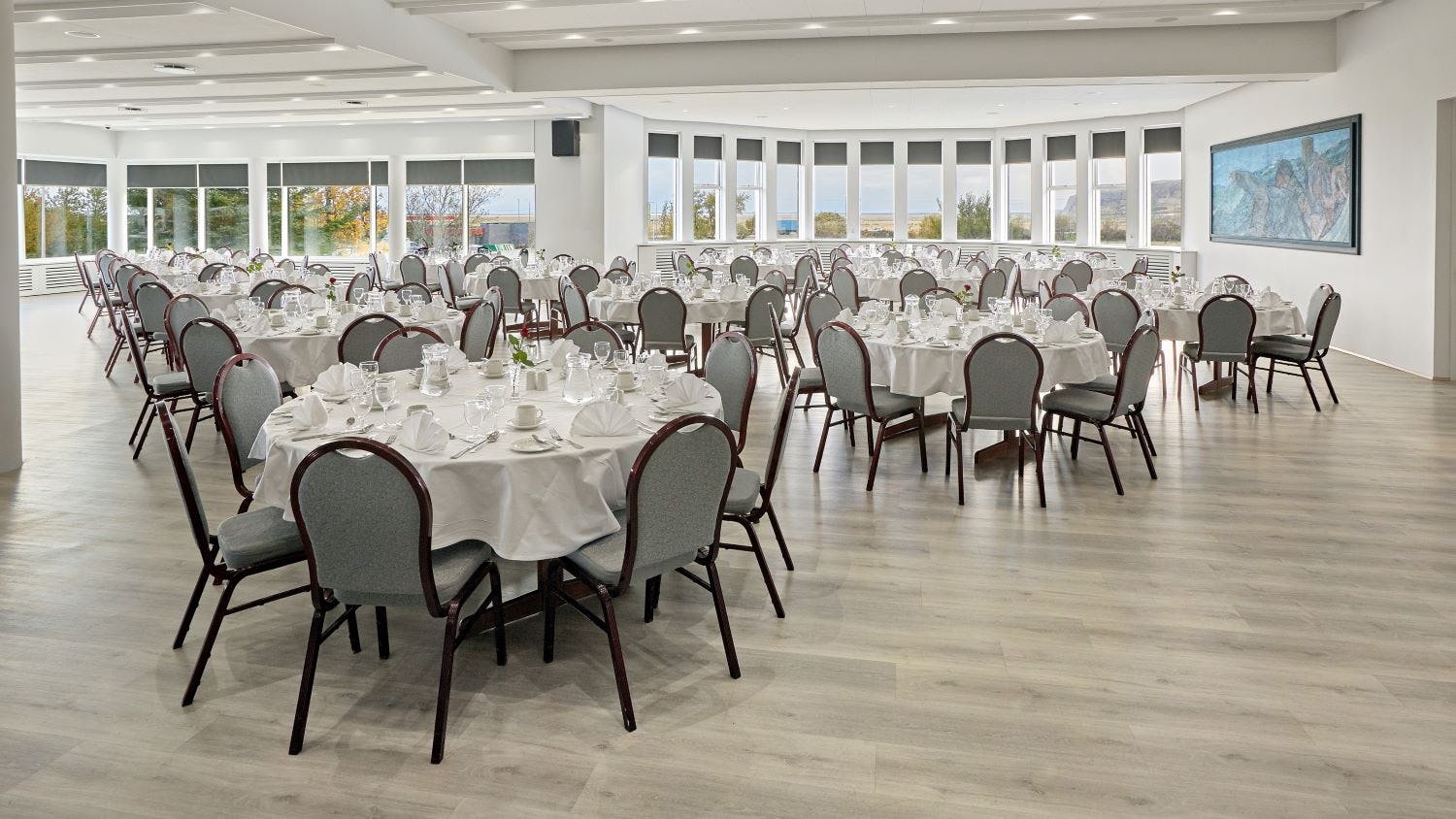 Fosshotel Húsavík offers 6 modern conference and meeting venues for all types of events. The flagship, Skjálfandi venue, offers 230 square meters of space and feautres a multi-color LED lighting in the ceiling, with a special Aurora Borealis lighting feature. You can inquire about all our venues here at our website.