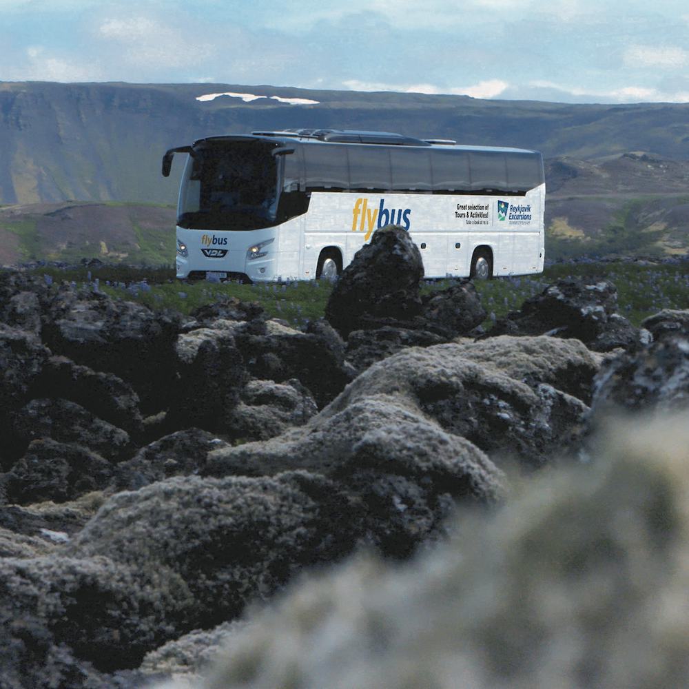 The Flybus – an official partner of Keflavík International Airport offering airport transfers in connection with every flight, known for its efficient and reliable connections.
